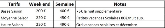 La fourniture de linge de lit , le bois pour le poele, la taxe de séjour sont inclus dans le prix.