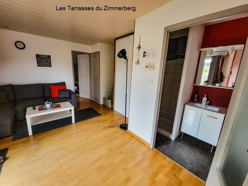 Canapé convertible. Transformable en lit 2 places dans le séjour - Téléviseur , penderie avec étagères -Le chauffage au sol vous réchauffera l'hiver. Accès Wifi illimité